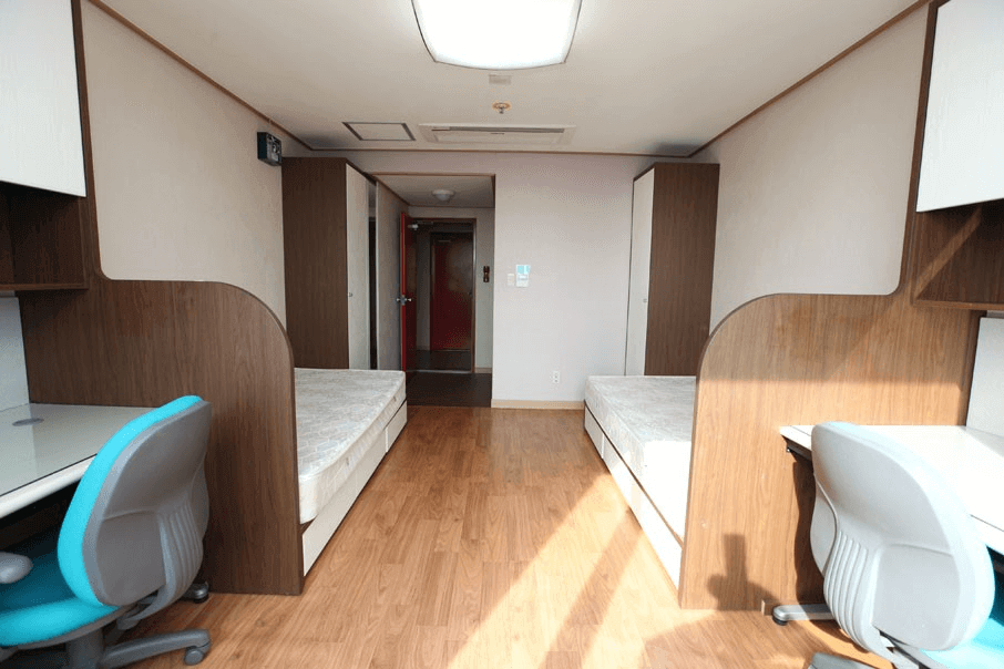 Phòng đôi được trang bị đầy đủ các thiết bị cần thiết như bàn, tủ quần áo, giường, điều hòa… Ngoài ra, tòa KTX còn có phòng giặt, phòng đọc sách, cửa hàng tiện lợi, nhà ăn…để đáp ứng mọi nhu cầu của sinh viên.
